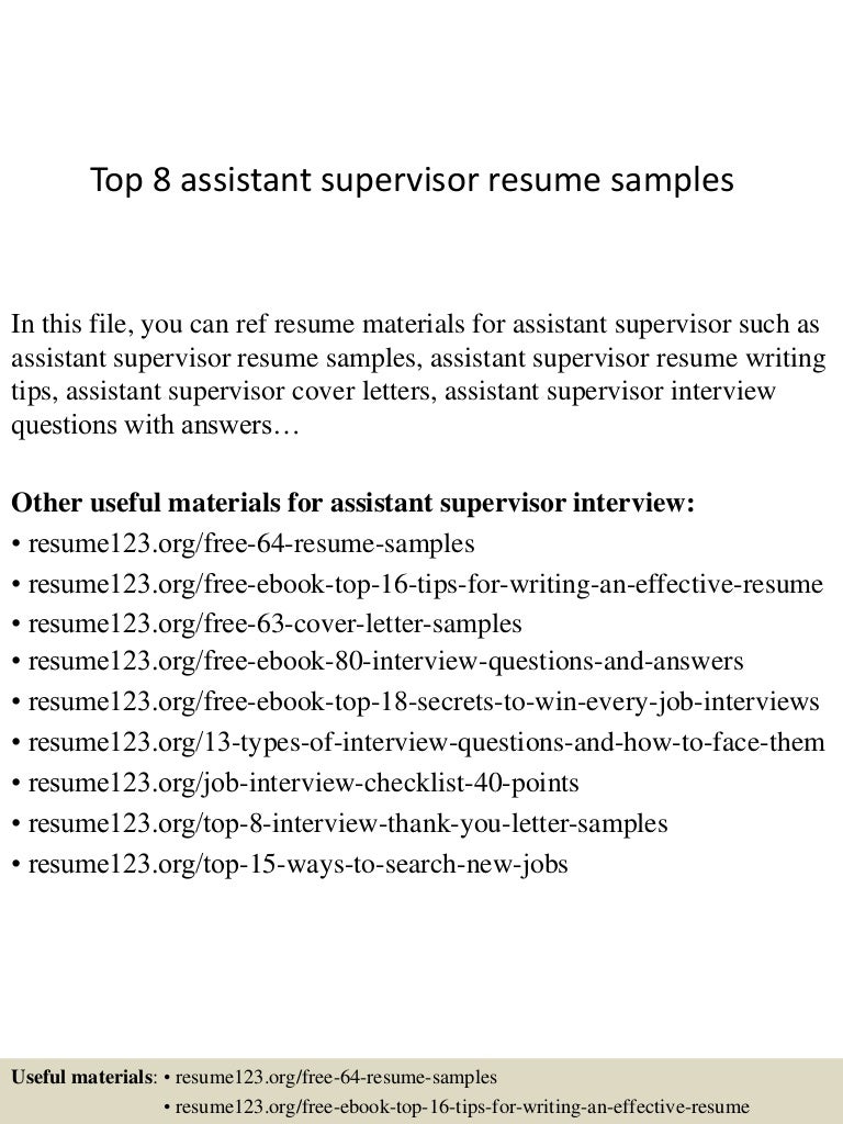 assistant supervisor resumeassistant supervisor resume sample