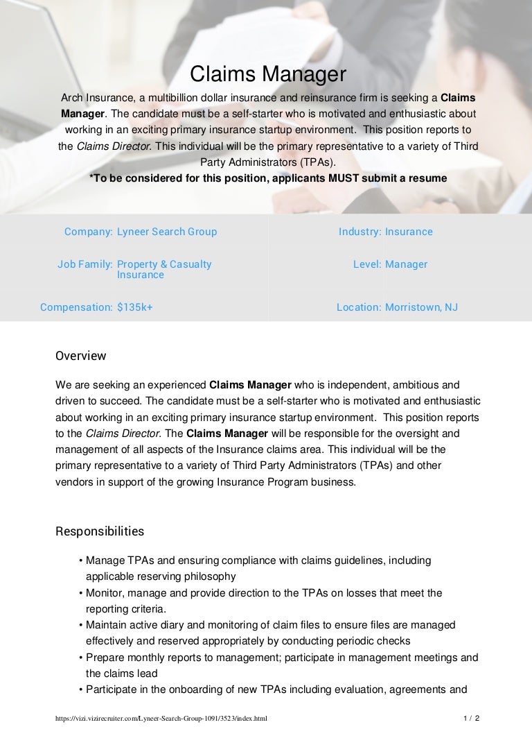claims manager resume